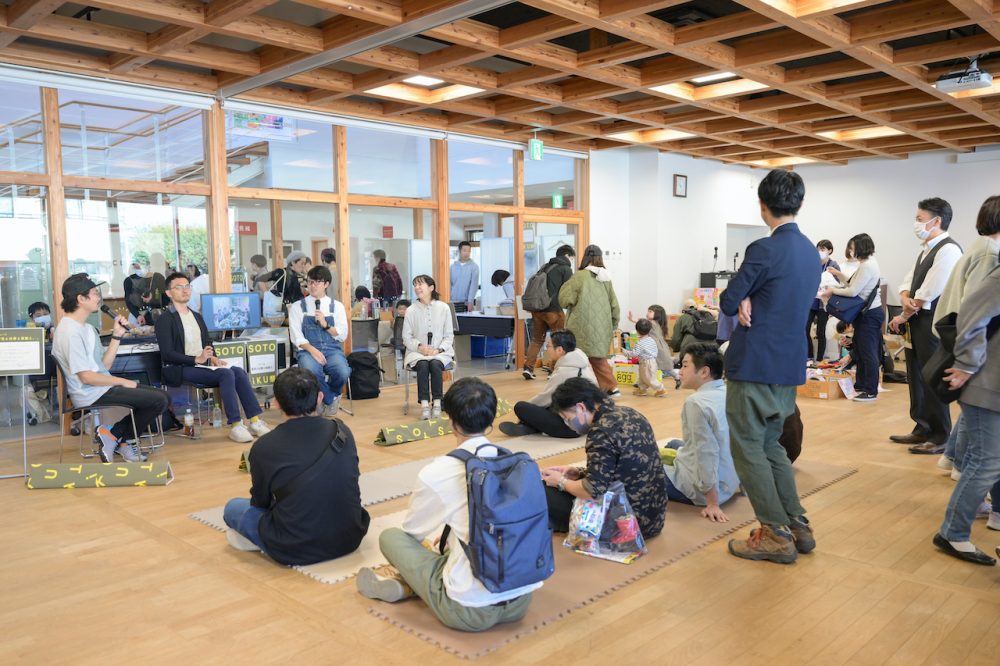 ソトイク・プロジェクトの大きなイベントが「ソトイク祭」。塩尻市の北部交流センター「えんてらす」を会場に、育児をサポートするさまざまな企業や団体が出店する、まちの育児環境を凝縮させたようなイベントだ。さらに“ソトイク・プロジェクトの想いをシェアし、まちのひとと育児者がともに育児について考えたい”とトークセッションも開催した。
