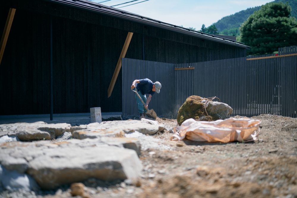 取材時はオープンに向けて、職人達が作庭を進めていた