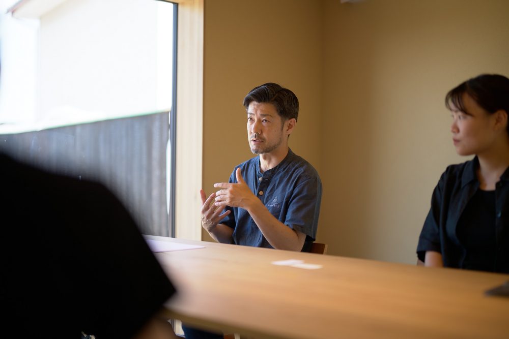 熊谷さん「山の雪から解けた水が、生命の源になる流れを表しています。庭蒼も山から学び、山の恵みを生かしている会社です。たくさんのことを山から得ているんです」